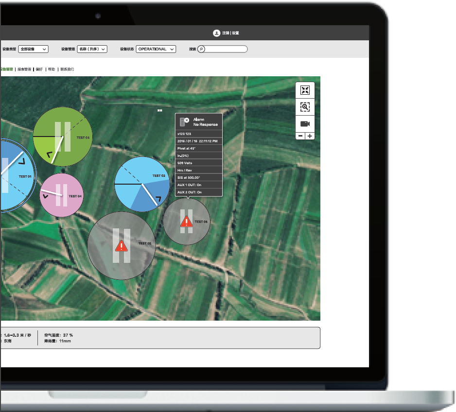 设备可能在人员离开后不久出现故障停机,越晚发现问题就会造成越大的损失。UNIAGRO™让这一切成为过去。灌溉控制远程服务实时向用户推送各种设备状态变更和故障报警,让用户随时随地掌握最及时的信息。